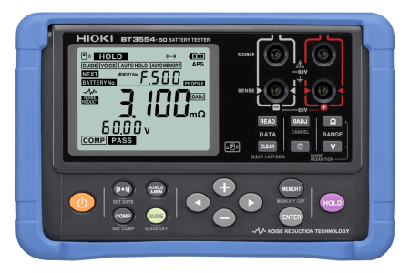 Hioki BT3554-50 är en portabel batteritestare för mätning av DC-spänning, AC-internresistans vid 1 kHz och temperatur. Instrumentet är utvecklat för snabb och tillförlitlig kontroll av batteriers tillstånd i drift utan att batterierna behöver kopplas från systemet.