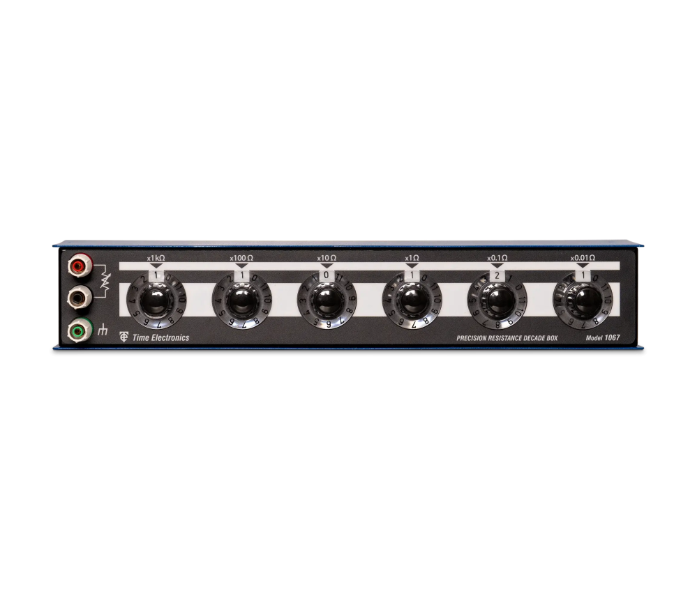 Time Electronics 1067 är en precisionsresistansdekadbox lämplig för ett brett utbud av simuleringsarbeten. Hög noggrannhet, långtidsstabilitet och låg temperaturkoefficient gör 1067 idealisk för att simulera och kalibrera precisions-Pt100-sensorer och temperaturindikatorer/-mätare som använder resistiva sensorer.