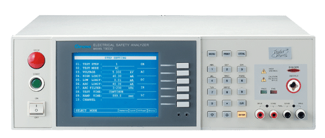 19032-serien kombinerar Hipot, isolationsmotstånd (IR), jordbindning (GB), läckström (LC)/AC LC/DC LC och dynamiska funktionstester.