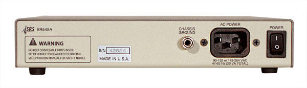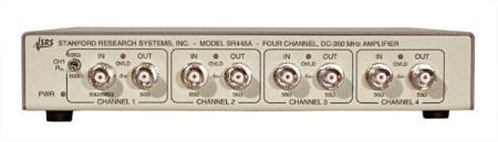 Modell SR445A 350 MHz förförstärkare innehåller fyra bredbandsbredd, DC-kopplade förstärkare, var och en med en förstärkning på 5.