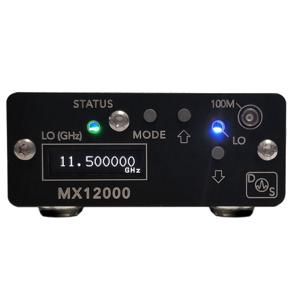 MX12000 är en högpresterande mikrovågsmixer för allmänt bruk med integrerad programmerbar bredbands lokaloscillator. LO-frekvensen kan ställas in med frontkontroller, USB-kommandon eller medföljande Windows PC-applikation. Med sin interna referenskälla med ultralågt brus har LO-signalen extremt lågt fasbrus. MX12000 är en extremt bekväm upp- eller nedkonverterare genom att eliminera behovet av extra kablage och en separat skrymmande, dyr högfrekvent signalkälla.