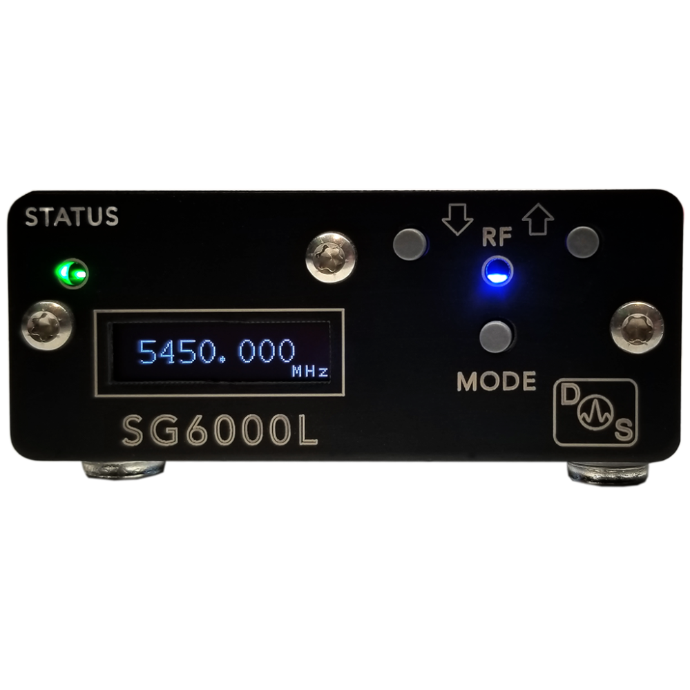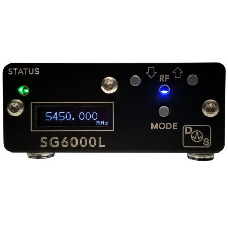 DS Instruments SG6000L ultrakompakta RF-signalgenerator fortsätter att sätta industristandarden för prisvärd och bärbar RF-signalgenerering. SG6000L gör det möjligt för användare att generera en högkvalitativ RF-signal enkelt och till extremt låg kostnad utan behov av en värddator. Denna helsyntetiserade, moderna fraktionella N-syntesenhet täcker 7 oktaver från 24 till 6000 MHz. Max uteffekt är vanligtvis över +15 dBm och kan justeras nedåt i steg om 0,5 dB, eller kontinuerligt via den interna variabla dämparen. Stegstorleken för RF-utgången varierar från maximalt ~3 KHz till mindre än 40 Hz, beroende på operationsband. Den skarpa OLED-skärmen ger användbar feedback för användaren, och främre kontrollknappar ger ett snabbt alternativ till USB-kontroll. Liksom de flesta av våra produkter, passar SG6000L lätt i din handflata, vilket gör den till en verkligt bärbar och bänkplatsbesparande enhet.