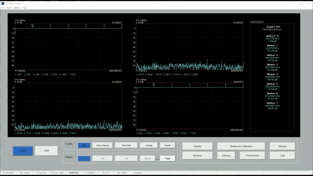 Den kan också samla alla fyra s-parametrarna vid varje frekvenspunkt på bara 190 µs; med andra ord en 500 punkters 2-portars .s2p Touchstone-fil på mindre än en tiondels sekund.