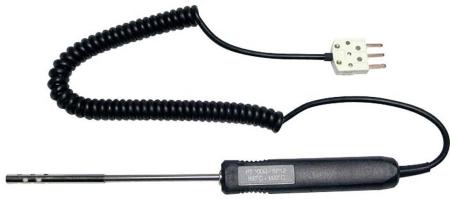 Givare för temperaturmätning i luft och gaser PT100 Ω med hölje i rostfritt stål och med handtag samt praktisk spiralkabel.
