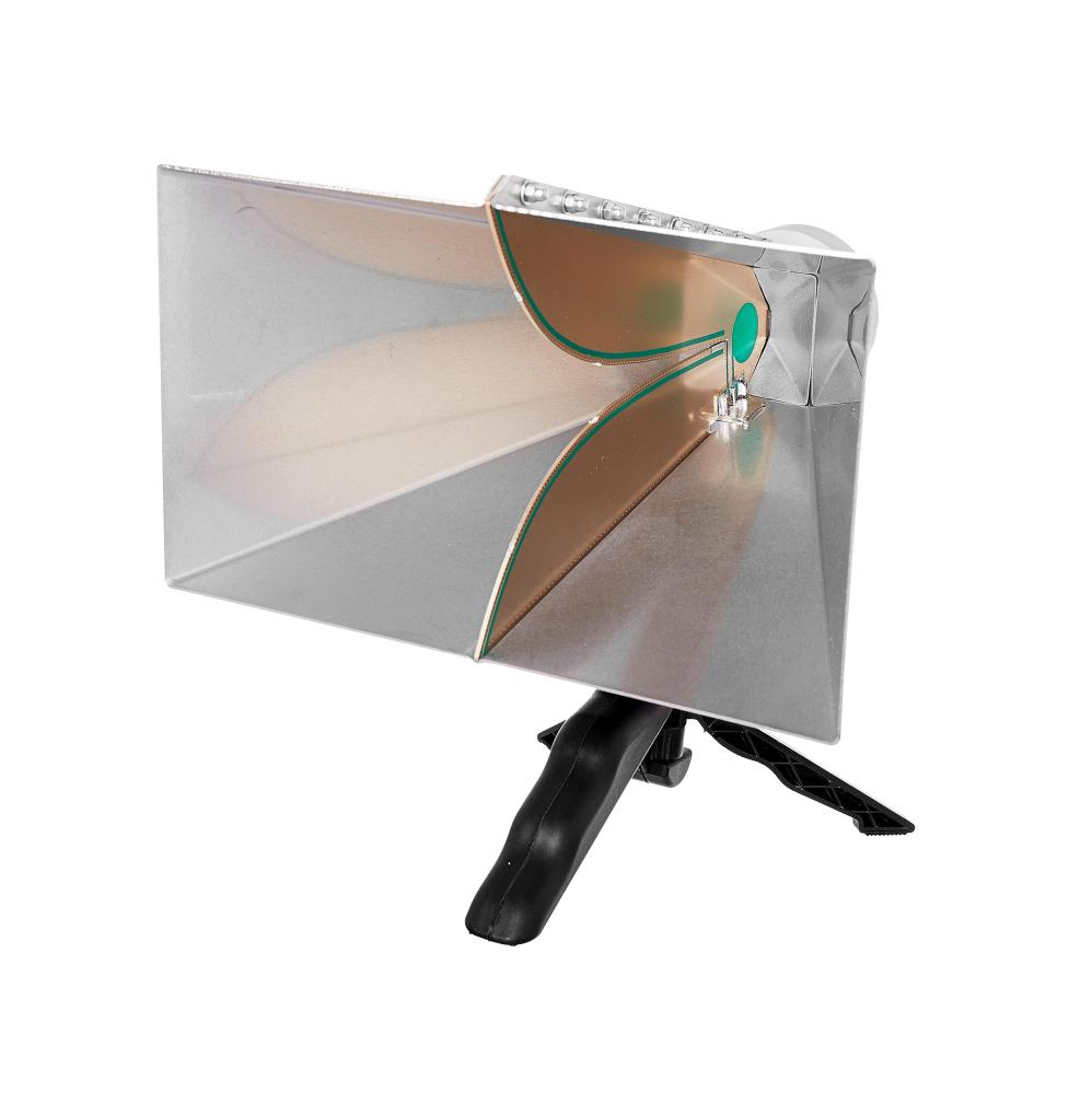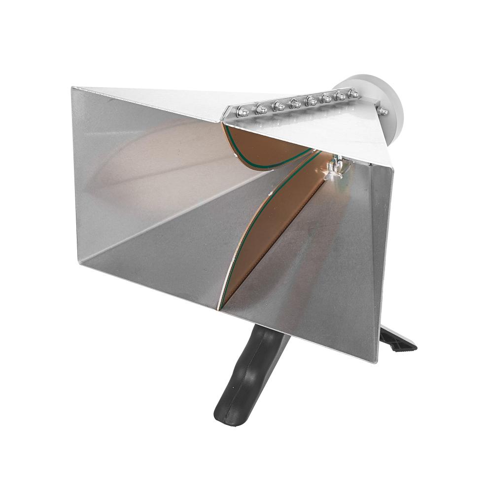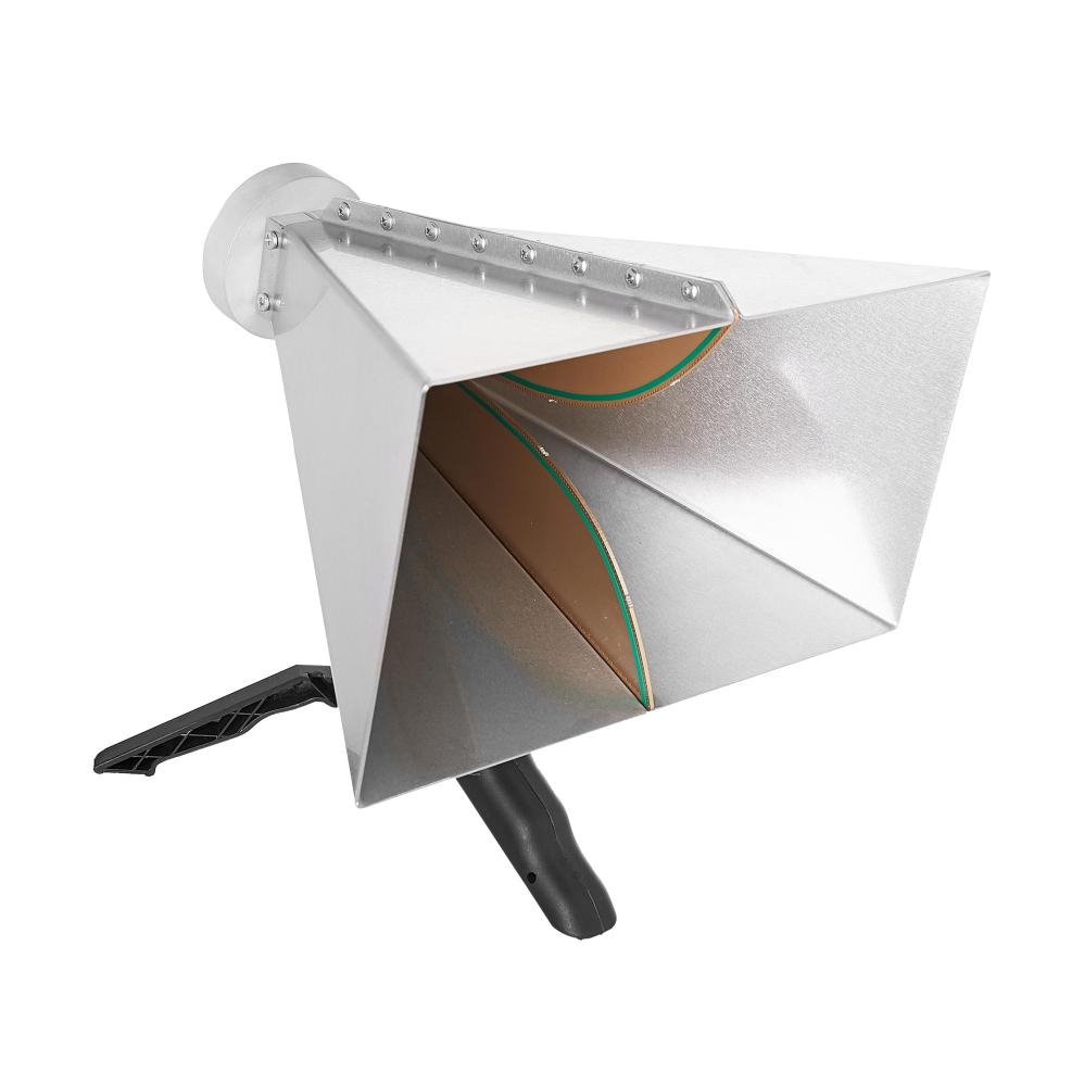 TBMA4 är en liten dubbelkantad hornantenn, med sitt strålande element tillverkat av kantpläterat PCB-substrat. Huset är tillverkat av rostfritt stål. Den är utrustad med en standard hon-N-kontakt och kommer tillsammans med ett "pistolgrepp"-stativ. En standard ¼” tråd på undersidan av antennen gör det enkelt att ansluta den till de flesta vanliga stativ.