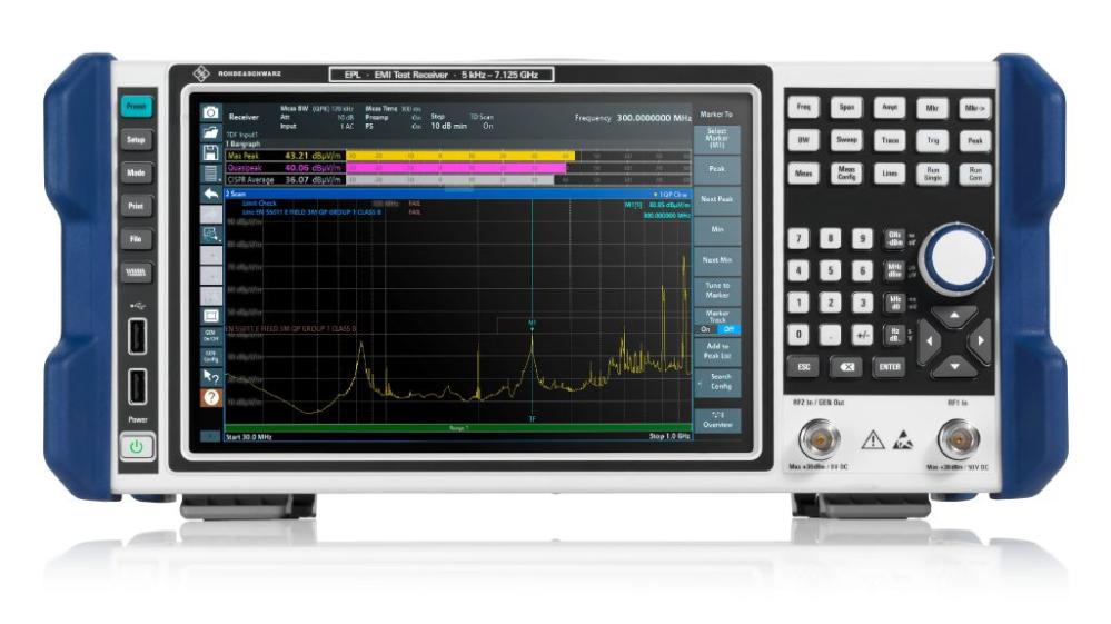 EMI-testmottagare för ledningsbundna och radiella mätningar från 5 kHz till 1 GHz. Tidsdomänskanning, preselection och preamp finns som tillval.