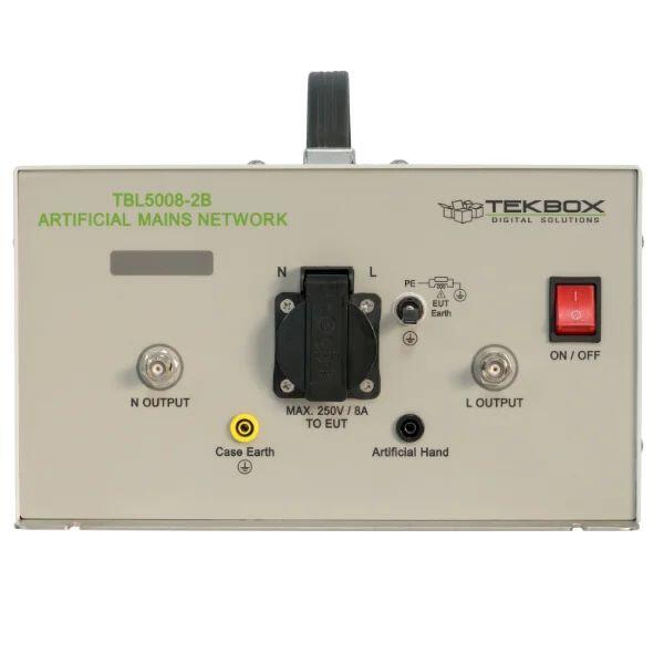 TBL5008-2B är ett linjeimpedansstabiliseringsnätverk designat för att mäta ledningsutsläpp på strömförsörjningsledningar i frekvensområdet 9kHz till 30MHz, enligt CISPR 16-1-2-standarden. Enheten är konstruerad för att testa enfas, AC-driven utrustning med matningsspänningar upp till max 250V och 8 A. Ledningsbrus kan mätas på fasen och på nollledaren. TBL5008-2B har separata mätutgångar för varje kanal för att möjliggöra anslutning för en gemensamt läge/differentiallägesseparator (LISN Mate), en PE-switch för att efterlikna en förlängningskabel och en konstgjord handanslutning.