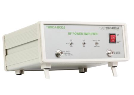 Den TBMDA-BCI25 modulerade förstärkaren ger den nödvändiga bandbredden och moduleringen för utförda immunitetstester med BCI-sonder enligt ISO 11452-4 i frekvensområdet från 1 MHz till 400 MHz. Den är utformad för att drivas av signalgeneratorer eller av spårningsgeneratorer av spektrumanalysatorer. Med en 1 dB kompressionspunkt på upp till 30 W i frekvensområdet 1 MHz till 400 MHz kan den generera testnivåer upp till 400mA. En inbyggd AM/PM – modulator möjliggör användning av spårningsgeneratorer som signalkälla. TBMDA-BCI25 har tillräcklig förstärkning för att uppnå maximal uteffekt med 0 dBm som tillhandahålls av en spektrumanalysatorspårningsgenerator.