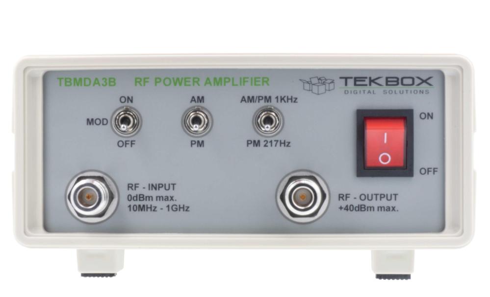 Den TBMDA3B, 10MHz – 1 GHz modulerade bredbandseffektförstärkaren är designad för att tillhandahålla en billig RF-strömkälla för immunitetstestning av elektroniska byggstenar och produkter före överensstämmelse. Drivs med en ineffekt på mindre än 0 dBm, kan den leverera en mättad uteffekt på upp till 8 W.