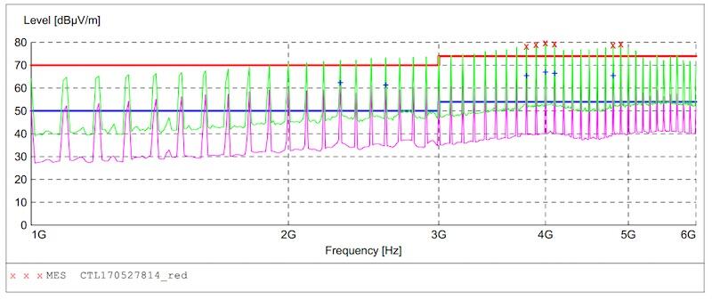 TBCG1 strålar över ett brett spektrum och överskrider avsevärt de gränsvärden för strålningsbrus som anges i någon CISPR-standard.
