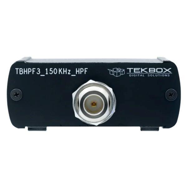 Symmetriskt 50 Ω högpassfilter med 3 dB bandbredd 135 kHz–100 MHz, 250 V märkspänning, 10 W ineffekt och N-hane/N-hona.