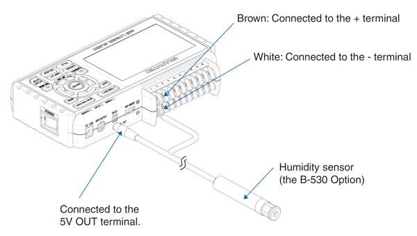 - Ström B-530 via dataloggarens 5V strömförsörjning