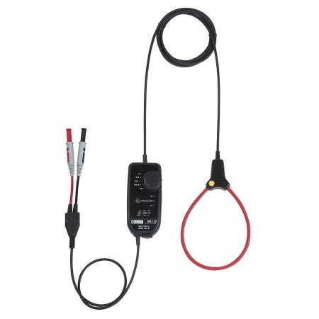 Flexibel 1-fas strömsensor 80 mA–3 kA med 35 cm mätögla (Ø 10 cm), bandbredd 10 Hz–20 kHz, 4 områden och 4 mm bananutgång.