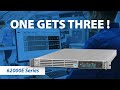 62000E-serien med 1U DC-strömförsörjning med 3-kanalsutgång. Det här helt nya tillägget till Chromas linje av strömförsörjningar antar full digital kretskontroll och högeffekts SiC MOSFET-kraftenheter samt höghastighetsstabilitet, hög effekttäthet och 92 % hög effektivitet. De 28 modellerna erbjuder antingen enkanals eller 3-kanals utgång, uteffekt från 1,7 kW till 5 kW per kanal, spänningsutgång från 230 V till 1 200 V och utström upp till 22,5 A.