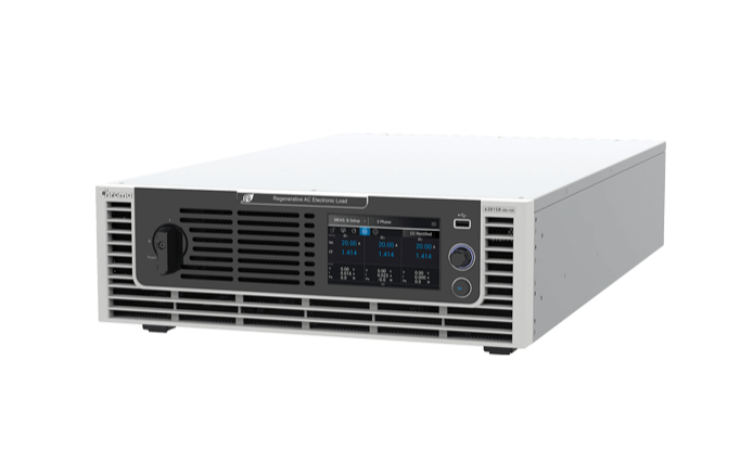 Regenerativ AC-last 15 kVA med 89 % verkningsgrad, CC/CP/CR-lägen, fasförskjutningssimulering, 30–350 V, 30–100 Hz, USB/LAN-gränssnitt och pekskärmsstyrning.