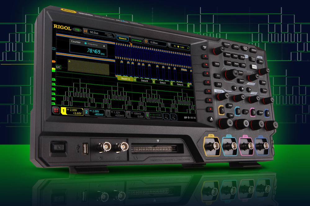 Det nya digitala oscilloskopet i MSO5000-serien som lanserades av RIGOL denna gång integrerar 7 oberoende instrument i ett, inklusive ett digitalt oscilloskop, en 16-kanals logikanalysator, en spektrumanalysator, en godtycklig vågformsgenerator, en digital voltmeter, en högprecisionsfrekvensräknare och totaliserare och en protokollanalysator.