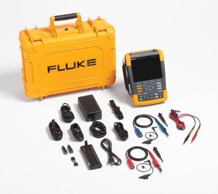 2-kanaligt med DMM och SCC293-kit. 500 MHz bandbredd, upp till 5 GS/s, 10 000 punkter per kanal och CAT III 1000 V/CAT IV 600 V.