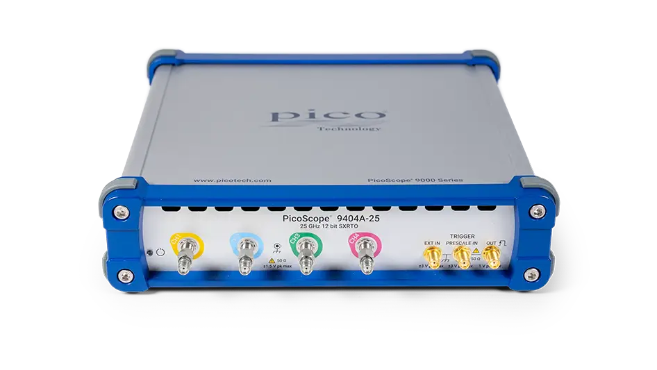 PicoScope 9400A-seriens sampler-utökade realtidoscillioskop (SXRTO:er) har fyra ingångskanaler med 50 Ω impedans och hög bandbredd. Med marknadsledande upplösningar för ADC, tidmätning och skärmvisning kan de noggrant mäta och visualisera höghastighets analoga signaler och datasignaler. De är idealiska för att fånga puls- och stegövergångar ner till 11 ps, impulser ner till 22 ps samt klock- och dataögon upp till 16 Gb/s (med tillval för 11,3 Gb/s klockåterhämtning).