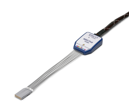 MSO-pod med 8 digitala kanaler, 500 MHz bandbredd, upp till 5 GS/s sampling (16 kanaler), 1 ns minsta pulsbredd och anslutning via digital gränssnittsport.