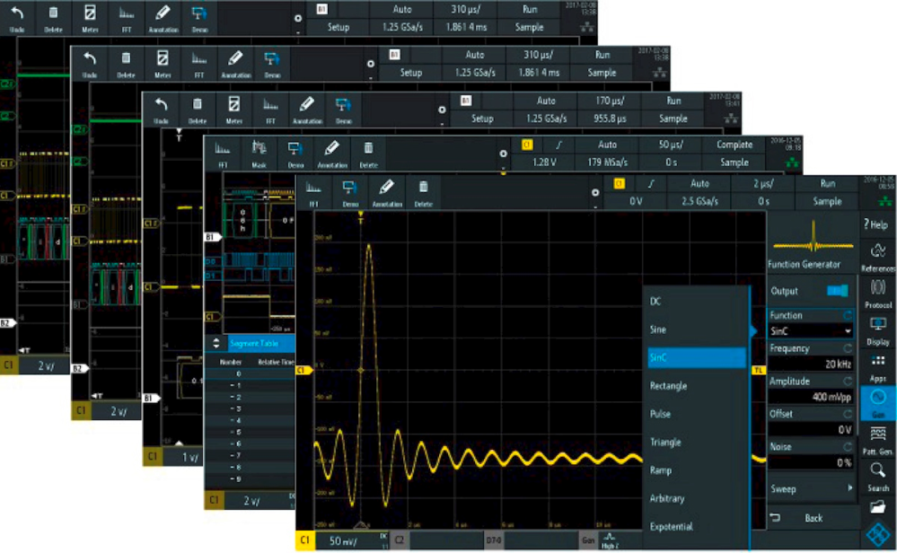 Mjukvarupaket som samlar seriell triggning och avkodning för I²C/SPI, UART och CAN/LIN, historik- och segmenterat minne samt godtycklig vågformsgenerator.