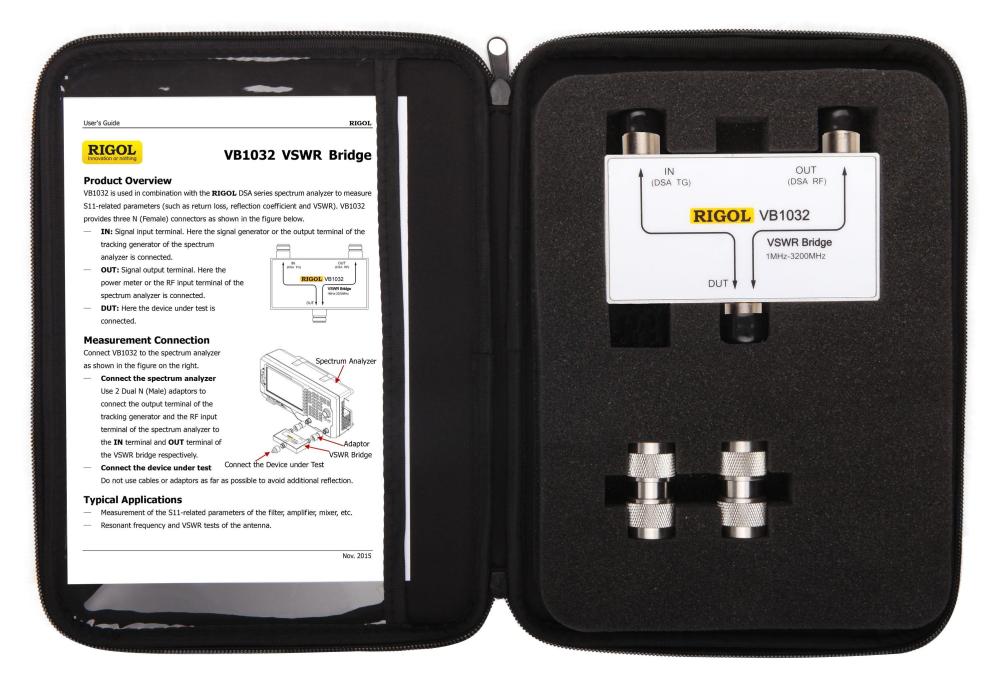 B1032 används i kombination med RIGOL DSA-seriens spektrumanalysator för att mäta S11-relaterade parametrar (såsom returförlust, reflektionskoefficient och VSWR).