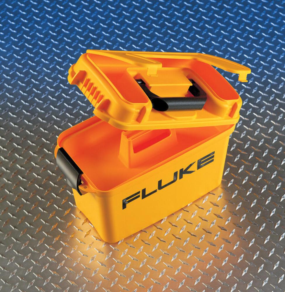 Robust plastväska med djup interiör för Fluke-mätare, kalibratorer och tillbehör, med gummitätning, uttagbar bricka, lockfack och kardborrband för kablar.